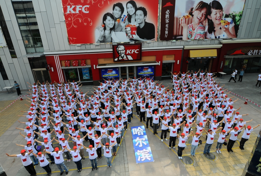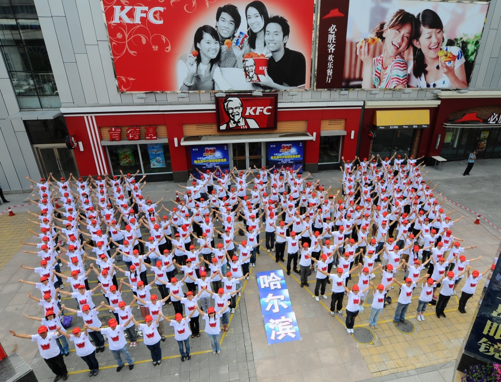 肯德基『勝利中國之W行動』哈爾濱站的近300個網友,用統一的形象,組成了一個大大的標准『W』字母形狀,用嘹亮的口號,為2008年的中國加油。火紅的8月來臨之際,肯德基用『W』行動集結起無數國人的愛國力量,用『勝利!中國!』的嘹亮口號喊出中國必勝的渴望與祝福。相信這一份份的愛與鼓勵將隨同肯德基『立足中國』的信念一起,如星星之火傳遍中華大地。讓我們眾志一心,為2008中國——加油!