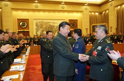 2016年3月13日,中共中央總書記、國家主席、中央軍委主席習近平出席十二屆全國人大四次會議解放軍代表團全體會議並發表重要講話。這是習近平同軍隊人大代表親切握手。新華社記者 李剛 攝