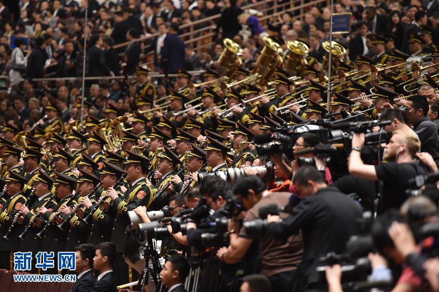 3月5日,第十二屆全國人民代表大會第五次會議在北京人民大會堂開幕。這是軍樂團在演奏。新華社記者楊宗友攝