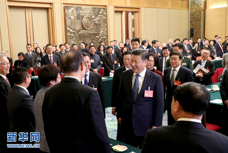 3月5日,中共中央總書記、國家主席、中央軍委主席習近平參加十二屆全國人大五次會議上海代表團的審議。新華社記者王曄攝
