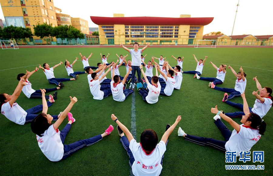 6月2日,河北省衡水市冀州中學教師帶領高三學生開展趣味減壓活動。