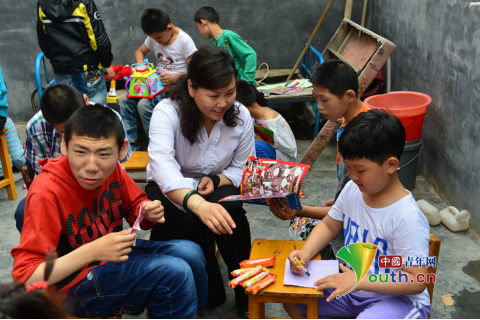 2015年6月1日,宋麗萍看望黃河灘區的福利院兒童。曹宏琰攝