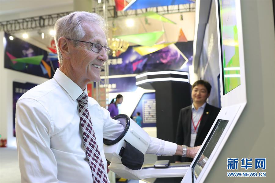 10月13日,一位來自澳大利亞的嘉賓在展覽上體驗健康檢測。當日,由外交部、商務部、國家外專局邀請的外國駐華使節、在華工作的外國企業界人士和專家來到北京展覽館,參觀『砥礪奮進的五年』大型成就展。展覽分10個主題內容展區和1個特色體驗展區,全面介紹了中國經濟社會發展新成就,中國共產黨治國理政新理念以及人民群眾生產生活發生的新變化。新華社記者張玉薇攝