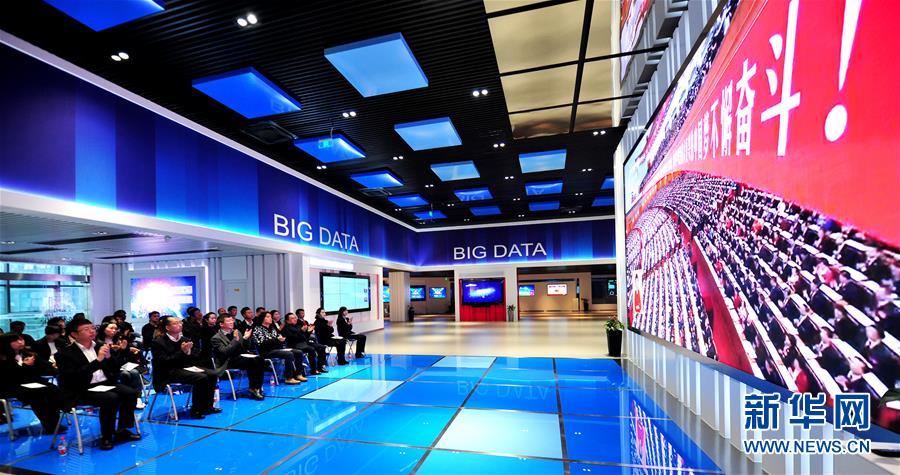 10月18日,貴州省貴陽市高新區大數據展示中心職工收看十九大開幕式直播。