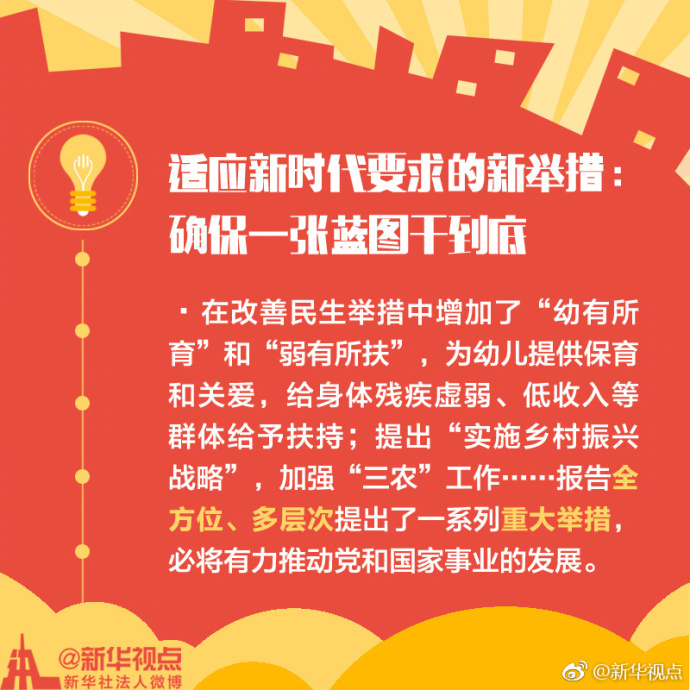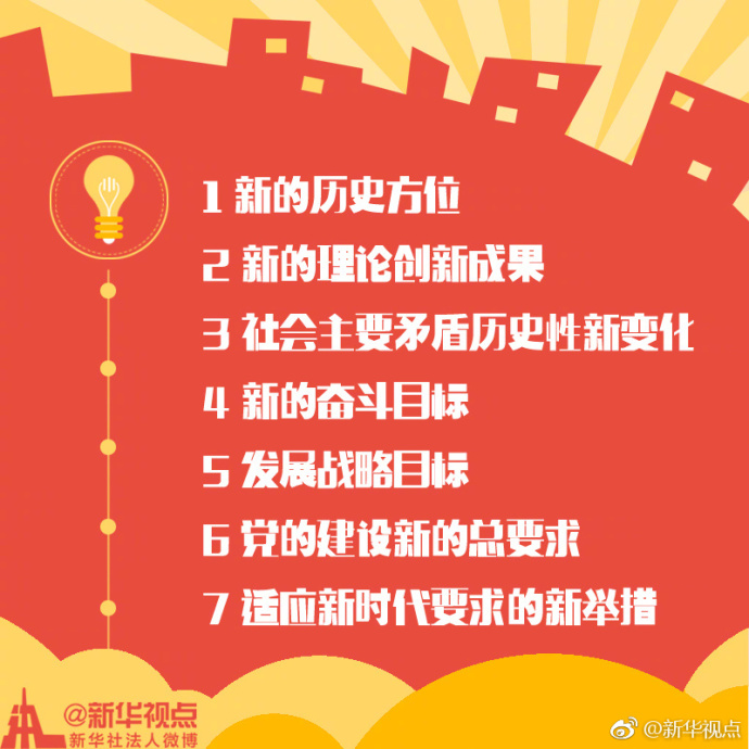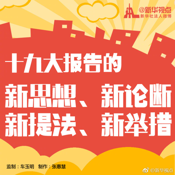 新華網北京10月19日電 新思想,新論斷,新提法,新舉措……十九大報告新意盎然。新華社記者幫你劃出重點。(據新華社『新華視點』微博報道)