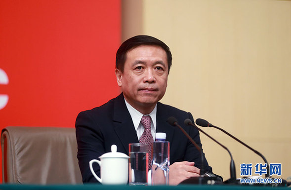 10月20日,十九大新聞中心舉行記者會,邀請中宣部、中央文明辦、文化部、新聞出版廣電總局相關負責人介紹加強思想道德和文化建設情況,並回答記者提問。圖為新聞出版廣電總局副局長張宏森向記者介紹情況。新華網 郝廣鵬 攝
