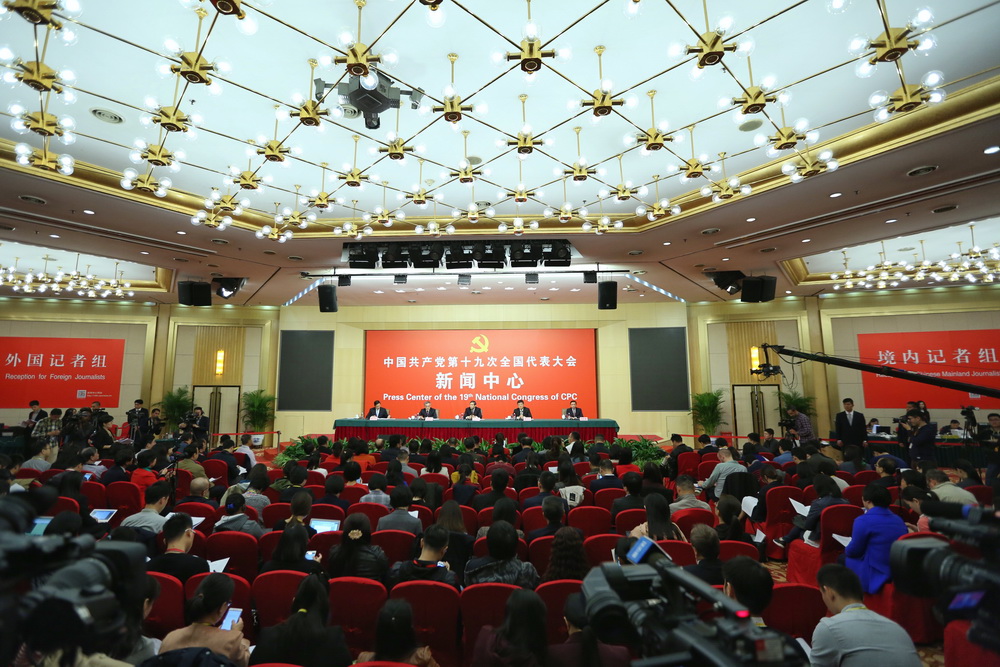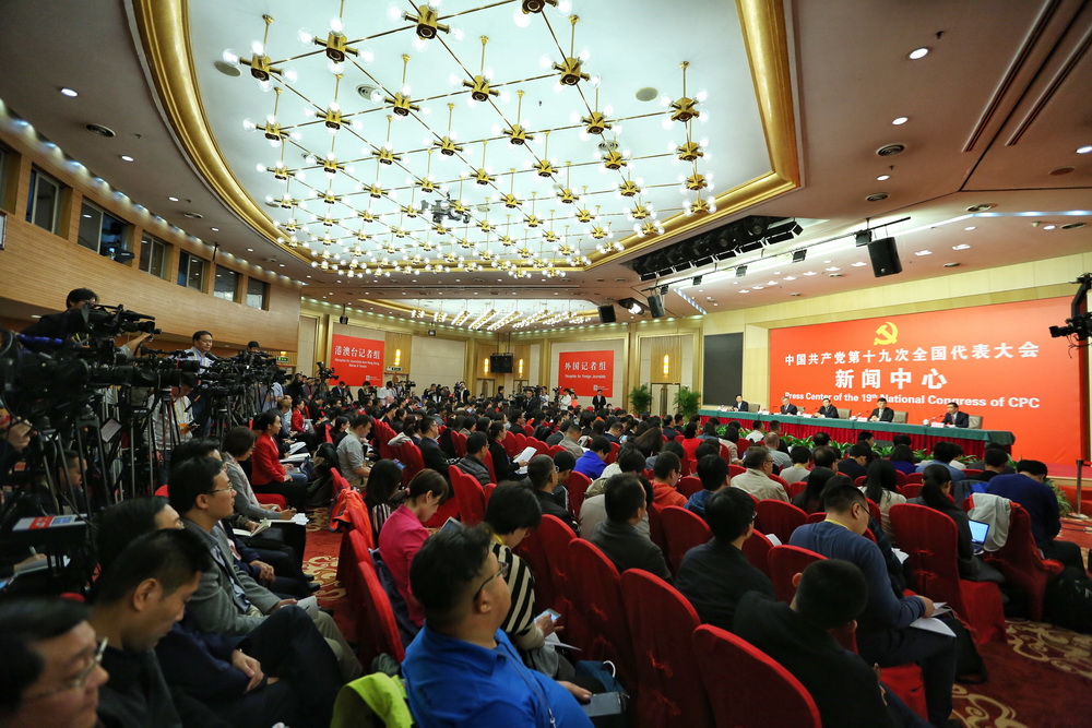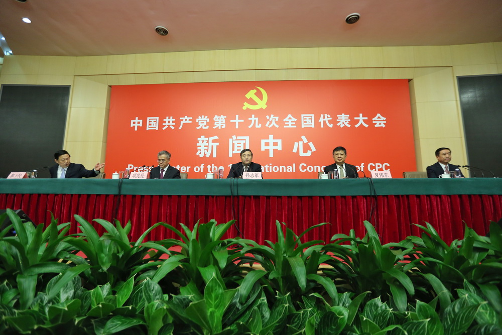 10月20日10:00,十九大新聞中心舉辦記者招待會,中宣部副部長孫志軍、中央文明辦專職副主任夏偉東、文化部副部長項兆倫、新聞出版廣電總局副局長張宏森介紹有關情況,並回答記者提問。李夏攝