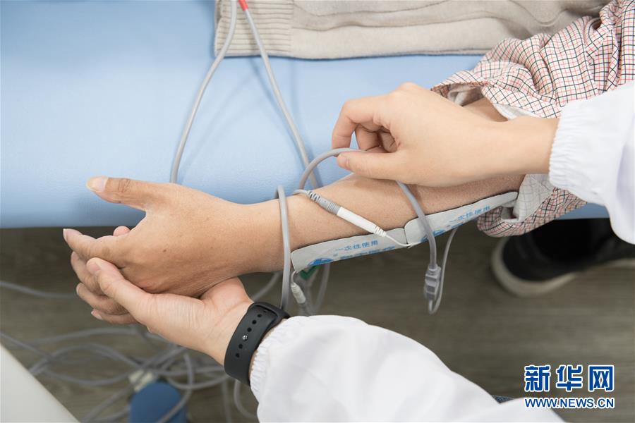 10月31日,在八裡店鎮衛生院,醫生為中風偏癱患者進行康復治療。八裡店鎮衛生院為轄區內中風等疾病患者專門設立康復科,使有需求的群眾就近享受康復醫療。新華社記者翁忻暘攝