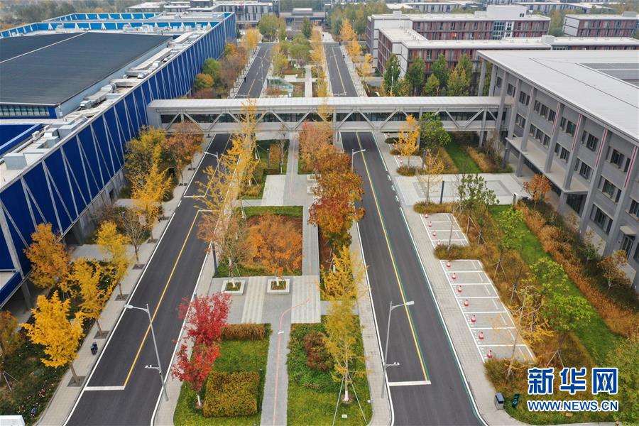 11月6日拍攝的雄安新區市民服務中心(無人機拍攝)。深秋時節的雄安新區色彩斑斕,景色宜人。新華社記者邢廣利攝