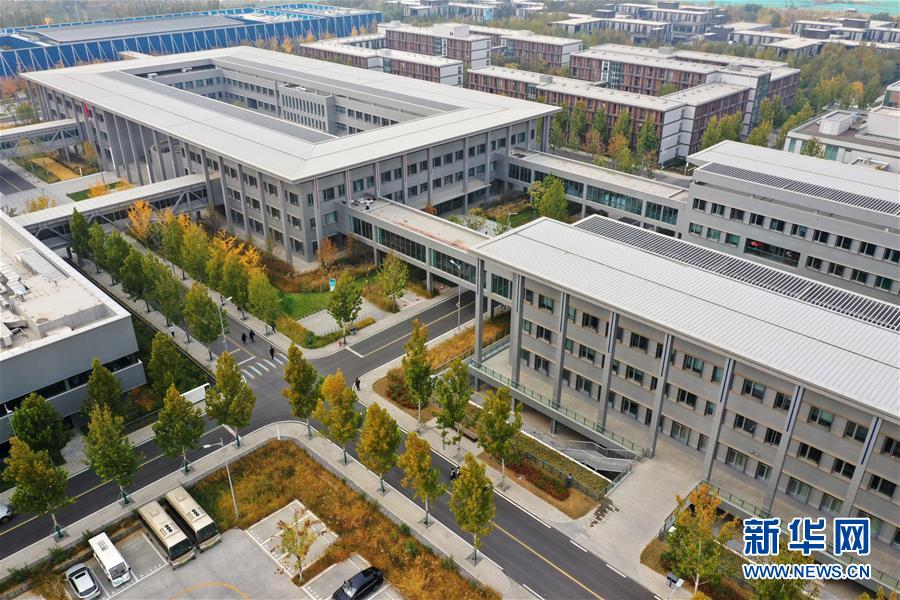 11月6日拍攝的雄安新區市民服務中心(無人機拍攝)。深秋時節的雄安新區色彩斑斕,景色宜人。新華社記者邢廣利攝