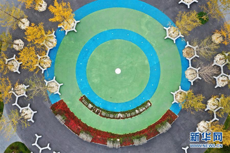 11月6日拍攝的雄安新區容城縣一景(無人機拍攝)。深秋時節的雄安新區色彩斑斕,景色宜人。新華社記者邢廣利攝