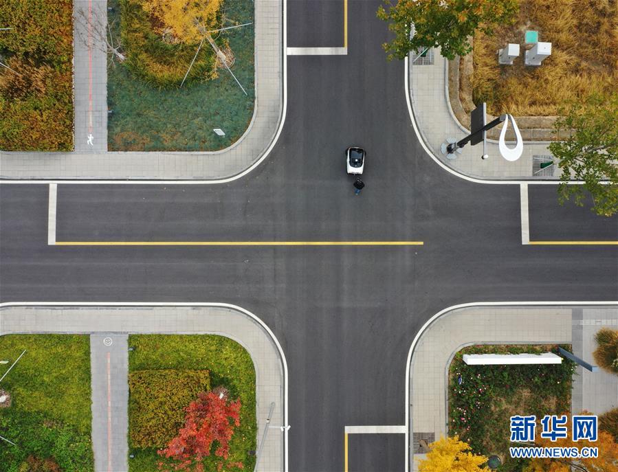11月6日拍攝的雄安新區市民服務中心一景(無人機拍攝)。深秋時節的雄安新區色彩斑斕,景色宜人。新華社記者邢廣利攝