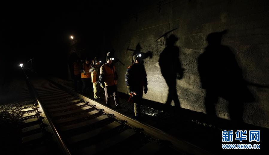 1月9日,在加格達奇工務段西羅奇嶺二號隧道,西羅奇維修工隊工作人員進行隧道除冰作業後准備返回工隊住所。新華社記者王毓國攝
