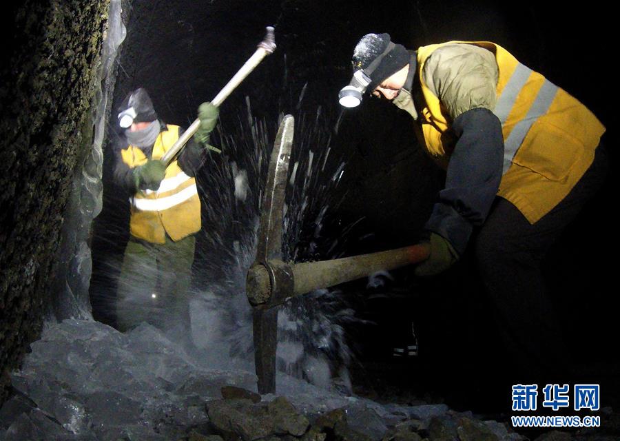 1月7日,在加格達奇工務段西羅奇嶺二號隧道,西羅奇維修工隊工作人員進行隧道除冰作業。新華社記者王毓國攝