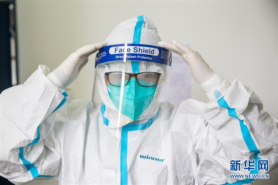 1月27日,在貴州省畢節市第三人民醫院感染科,黃迪在佩戴面罩。新華社發