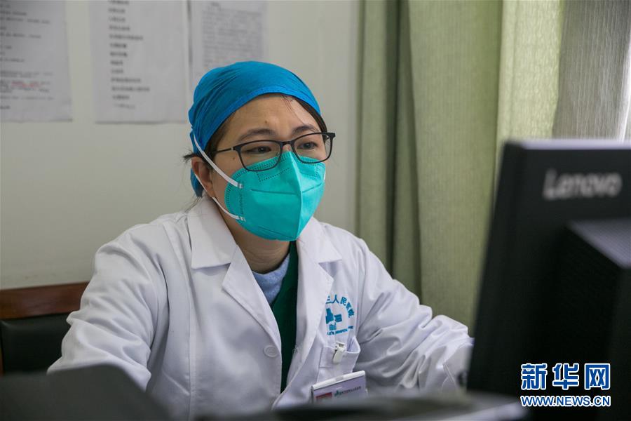 1月27日,在貴州省畢節市第三人民醫院感染科,黃迪在辦公室查閱病人資料。新華社發