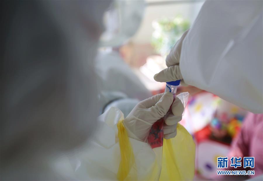 2月10日,王莉莉將采集好的鼻咽拭子裝入采樣管。新華社發(王彥冰攝)