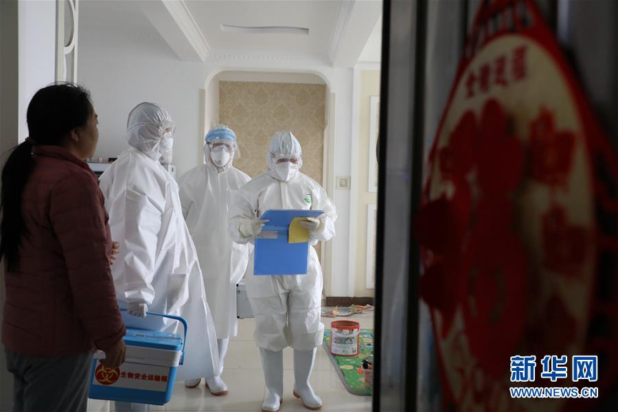 2月10日,王莉莉(右二)和同事在入戶做流行病學調查。新華社發(杜昱葆攝)