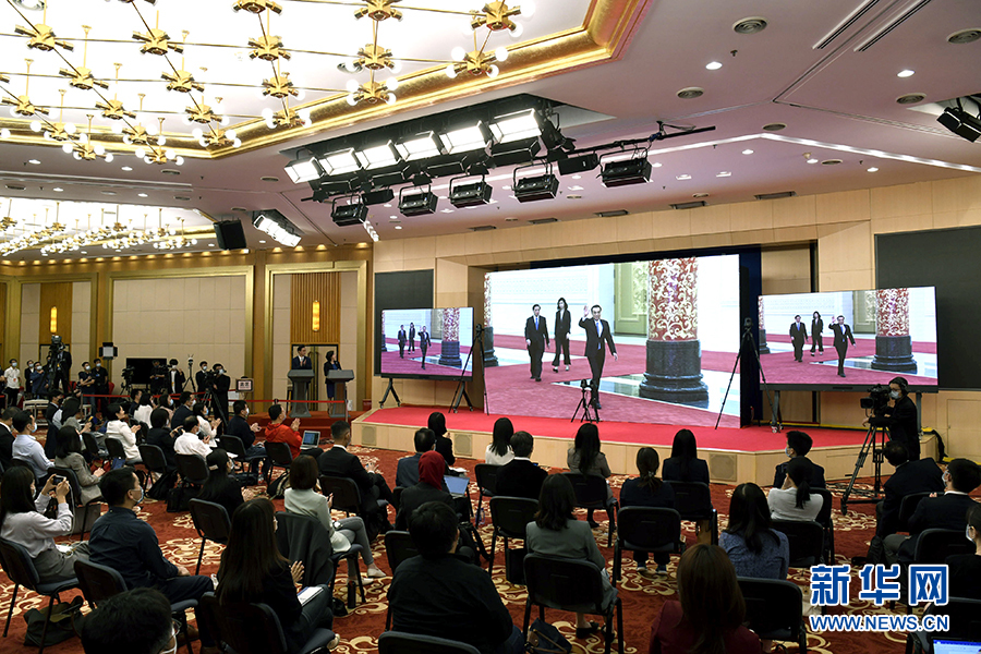 5月28日,國務院總理李克強在北京人民大會堂出席記者會並回答中外記者提問。這是記者在梅地亞中心多功能廳采訪。新華社記者金良快攝