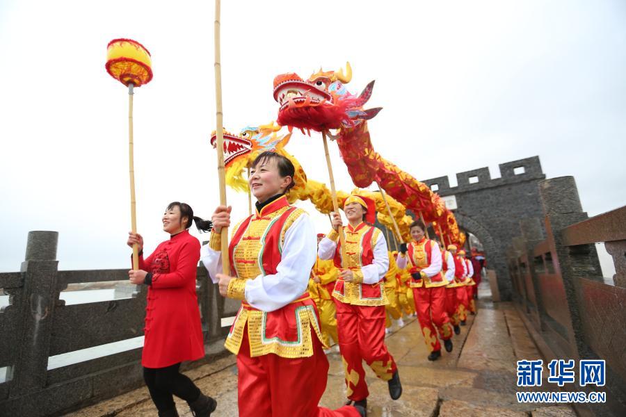 2月25日,江蘇省淮安市洪澤區岔河鎮舉辦『老街民俗鬧元宵』活動,民間藝人表演舞龍。新華社發(陳凱攝)