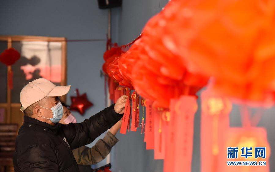 2月25日,河北省邯鄲市叢臺區叢臺東街道煤炭設計院社區居民在猜燈謎。新華社發(郝群英攝)
