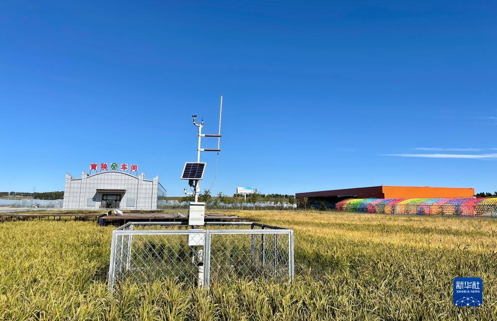 這是黑龍江省北安市革命現代農機專業合作社稻田裡的一處物聯網設備,可以對水稻生長情況進行數據采集和現代化管理(9月18日攝)。新華社記者楊思琪攝