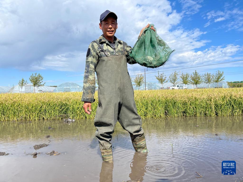 『種了大半輩子地,沒想到還有這新鮮事。』北安市城郊鄉革命村村民李學軍說,河蟹與水稻共養共生,河蟹的排泄物為水稻提供有機肥料,稻田裡的水草和蟲為河蟹提供食物,實現了經濟效益與生態效益『1+1>2』的效果。
